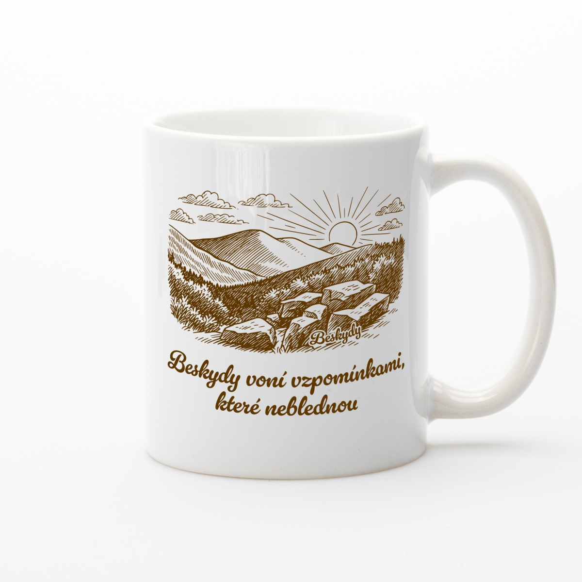 Beskydy voní vzpomínkami, které neblednou. Tento keramický hrnek přináší hřejivý pocit návratu — k místům, kde se člověk cítí doma, i když od nich stojí daleko.
