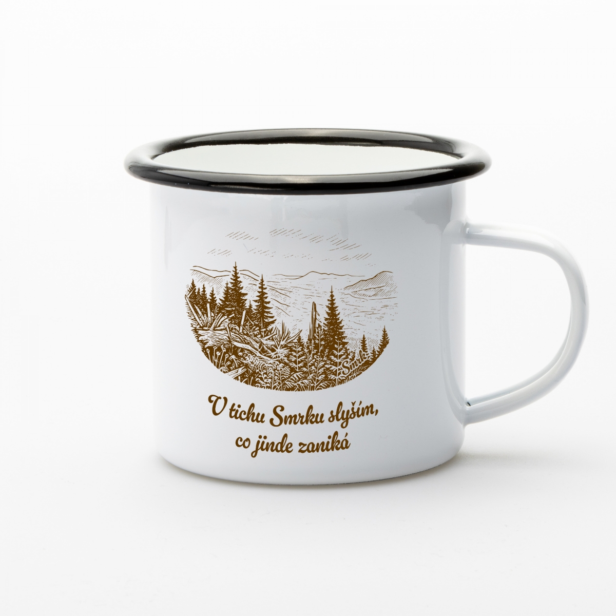 Vychutnej si svůj oblíbený nápoj tam, kde se čas zpomalí. Plecháček s jemnou ilustrací Smrku ti připomene, že právě v tichu hor slyšíme to, co jinde zaniká.