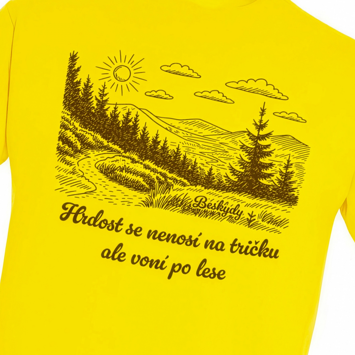 Tohle tričko je pro všechny, kteří vědí, že skutečná hrdost není o tom, co máš na sobě – ale co v sobě nosíš. Sytě žluté unisex tričko rozsvítí každý den stejně jako ranní paprsky nad beskydskými kopci.